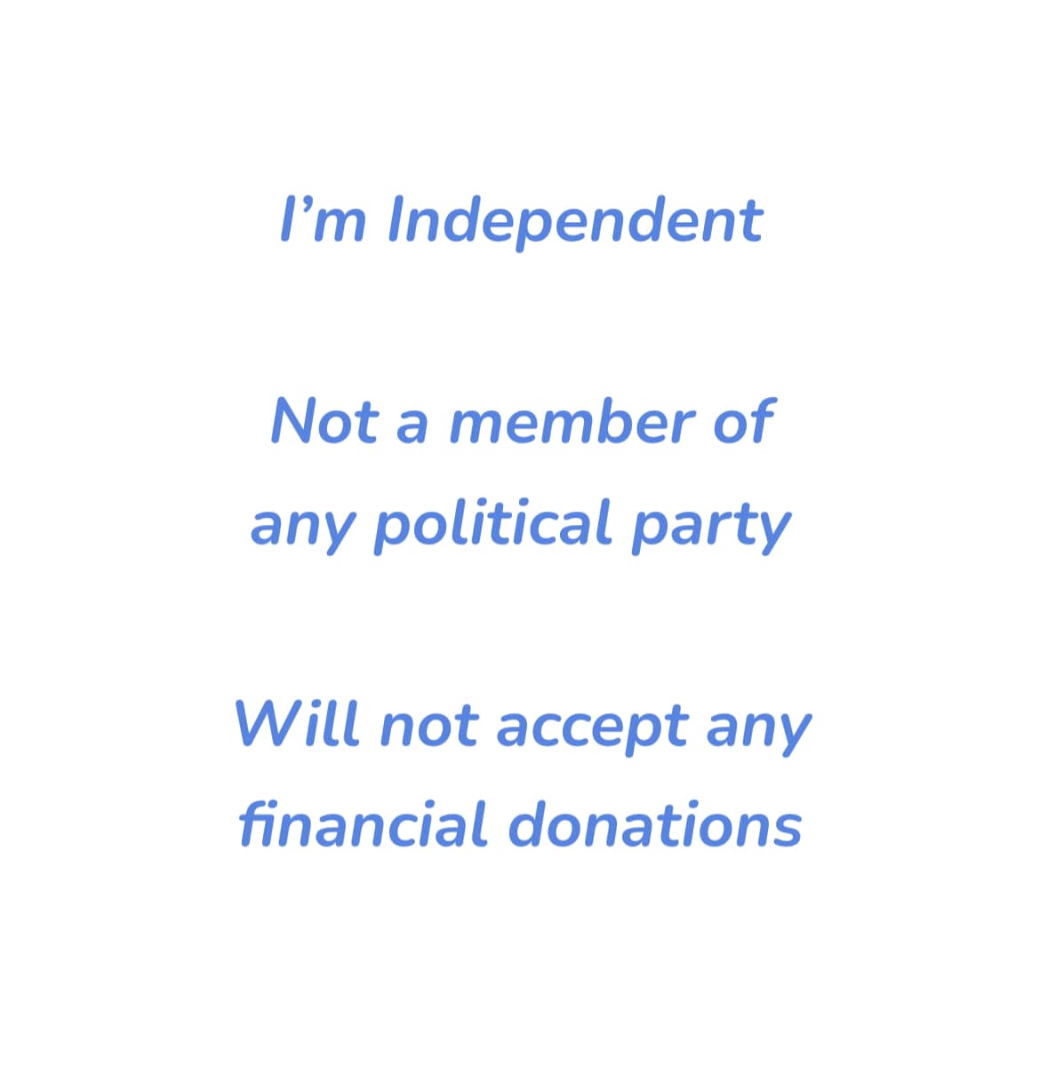 I believe in an open, accountable and transparent Council that delivers facilities, services and infrastructure for our residents benefit first.