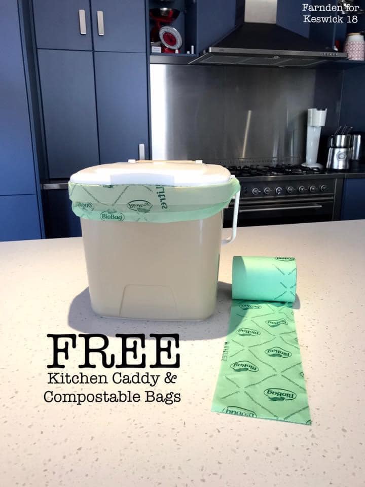 -Provision of free kitchen caddies and compostable bags to all residents to encourage large reduction in waste to landfill